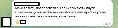 «Может власти попробовали бы пошевелиться и пнули коммунальщиков, чтобы начали убирать этот пух? Все улицы им заполонило – ни чихнуть, ни пернуть»;