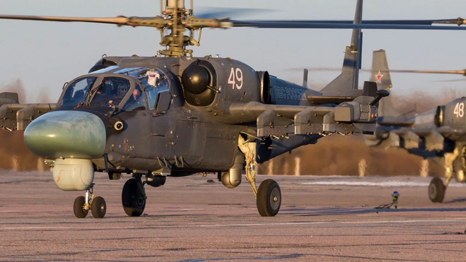 «Экипаж вертолета Ка-52, обнаружив движение бронетранспортеров противника с личным составом, применил управляемые ракеты. В результате удара были уничтожены две единицы бронетехники с экипажами», — сказано в описании к ролику.