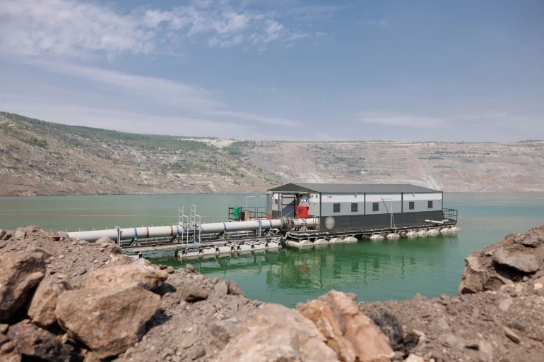 На промышленной площадке построили цех, отвечающий за сгущение и транспортировку получившегося закладочного материала. Он поступает в разрез по пульпопроводу длиной в 14 километров. По мере того, как заполняется карьер, поднимается и уровень воды. Сейчас это — 200 с лишним метров от нижней точки разреза. Важно, что реализуемый проект никак не повлияет на водоемы, расположенные по соседству, благодаря системе оборотного водоснабжения. Она возвращает из разреза на повторную работу порядка 20 миллионов тонн воды.
