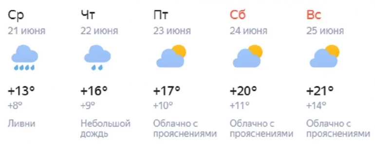 В Челябинске тоже пройдёт небольшой дождь. Днём воздух прогреется до +13…+15. По данным долгосрочного прогноза от сервиса «Яндекс.Погода», похолодание задержится до выходных. Однако и суббота с воскресеньем будут не очень тёплыми: максимум, который обещаются синоптики, — это +21 градус.