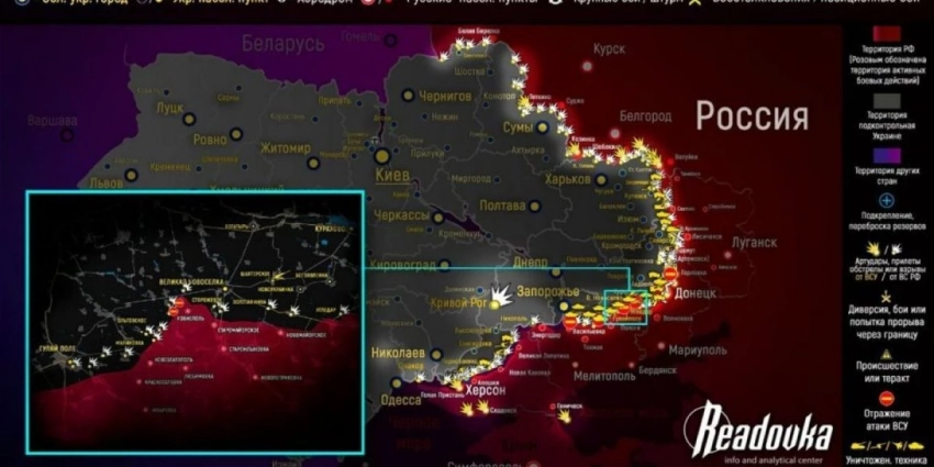 В свою очередь, группировка войск «Восток» ВС РФ сорвала несколько попыток наступления батальонных групп ВСУ под Новопокровкой, Новоданиловкой и Малой Токмачкой. Также российские войска ударом по колонне противника вывели из строя 9 танков и до 20 других бронемашин.