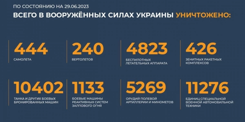 Сводка Министерства обороны Российской Федерации 30.06.2023 г.