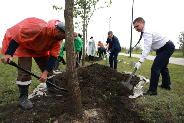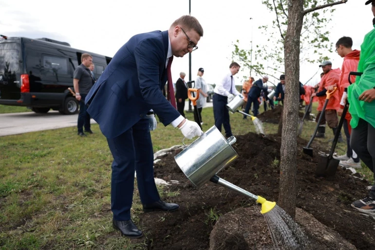 Губернатор Алексей Текслер поучаствовал в высадке деревьев