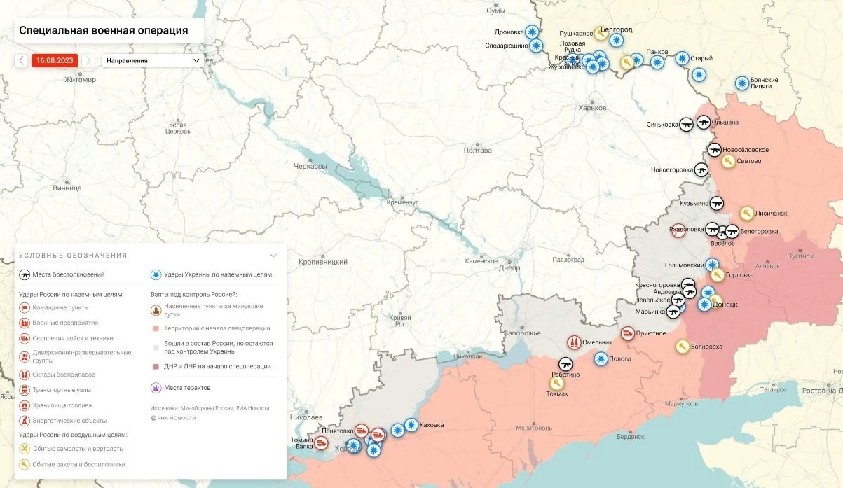 Военная спецоперация (СВО) РФ на Украине: последние новости на сегодня, 16.08.2023
