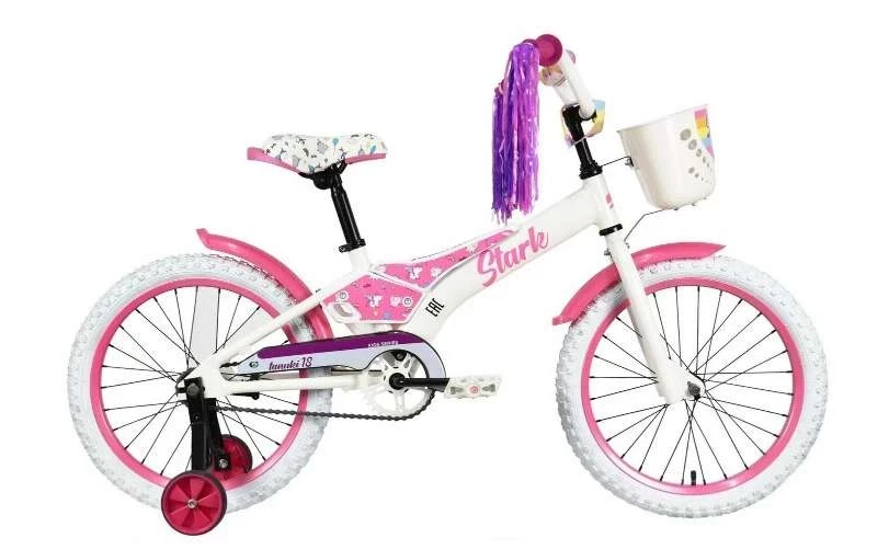 Детский велосипед Stark Tanuki 18 Girl, год 2023, цвет Белый-Фиолетовый