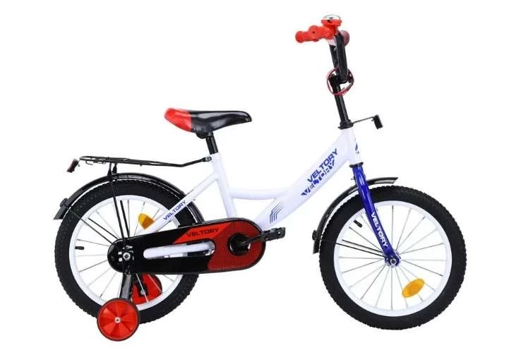 Четырехколесный велосипед VELTORY – это аппарат для мальчиков и девочек ростом до 105 см включительно. Он имеет цепной привод, жёсткую вилку, рулевую колонку (не интегрируемая, резьбовая) размером в 1 дюйм. Подъём руля можно регулировать. Тормоз предусмотрен только сзади (начальный). Обода, как и рама выполнены из стали. Скорость одна, каретки начальные, 1 звезда в кассете и системе. В набор поставки входят боковые колёса, звонок, крылья, защитная накладка на руле и защита цепи. Под седлом и впереди рулевого можно прикрутить световые отражатели.