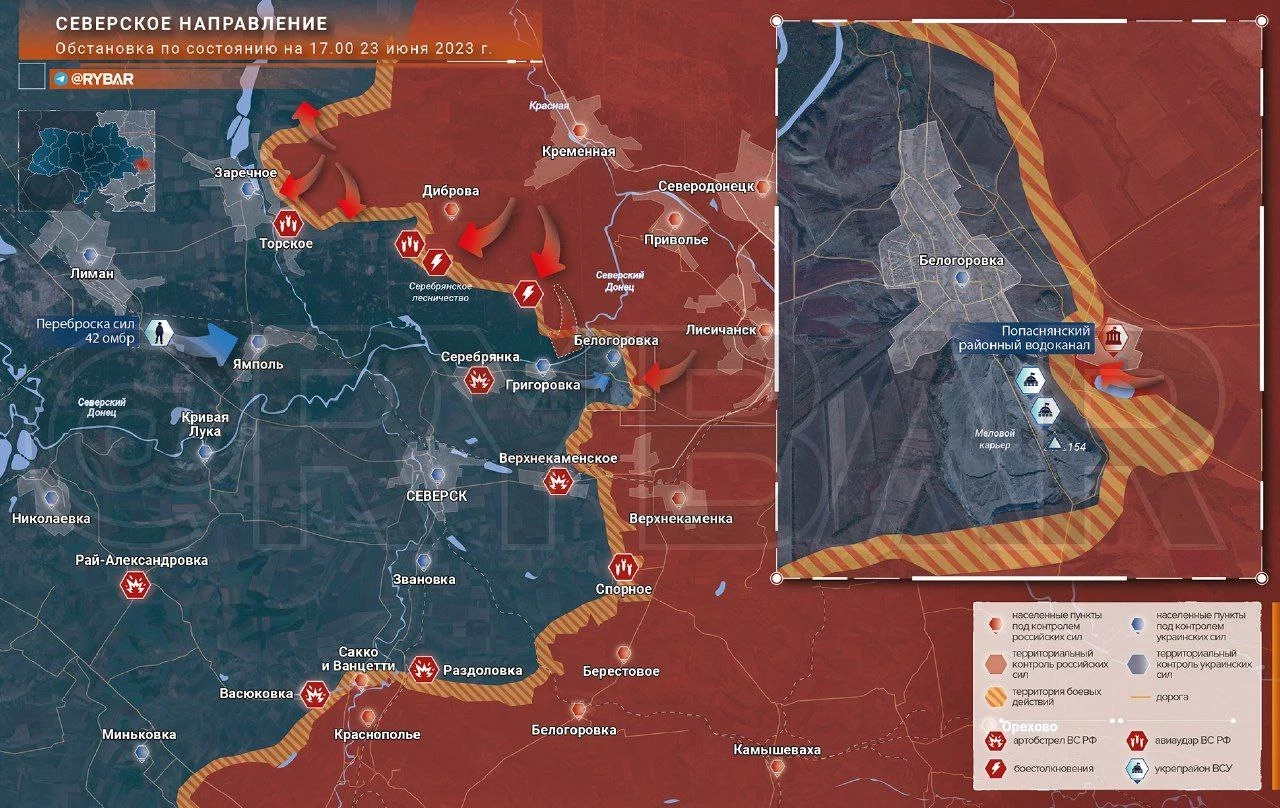 Карта боевых действий: Северское направление обстановка по состоянию на 19.00 23 июня 2023 года