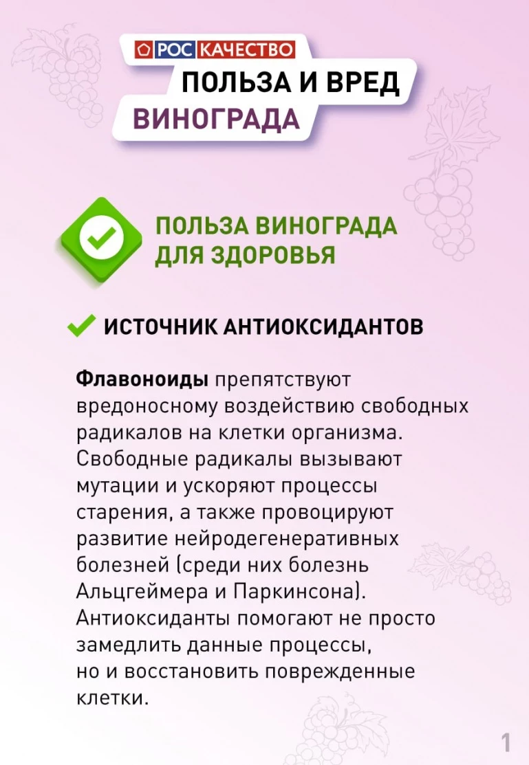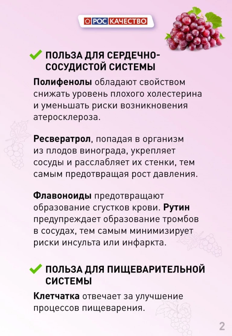 Виноград — это кладезь витаминов группы В, K, А, С, Е, калия, кальция, железа, магния и меди. Ещё ягоды содержат клетчатку, органическую кислоту и сахар. Но полезно это лакомство не всем, а некоторым и вовсе противопоказано. В каких случаях виноград может навредить, почему его не стоит употреблять на ночь, можно ли его есть с косточками, и о других тонкостях его употребления рассказали в Роскачестве.