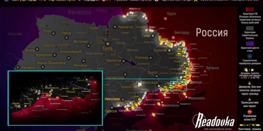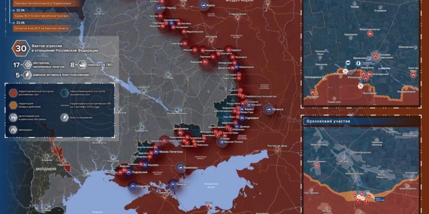 Карта боевых действий на Украине сегодня 24.06.2023 в реальном времени на сейчас