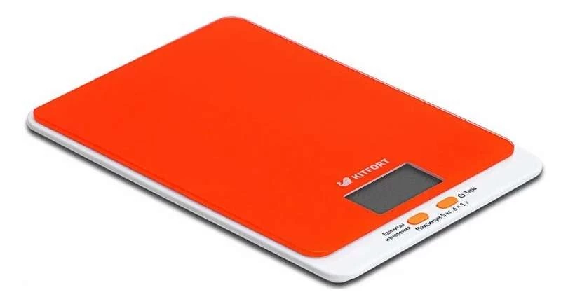 - Весы Kitfort KT-803-5: Эти кухонные весы обладают ярким оранжевым цветом и имеют разнообразие единиц измерения. Их стеклянная платформа делает их легкими в уходе и стильными для любой кухни.