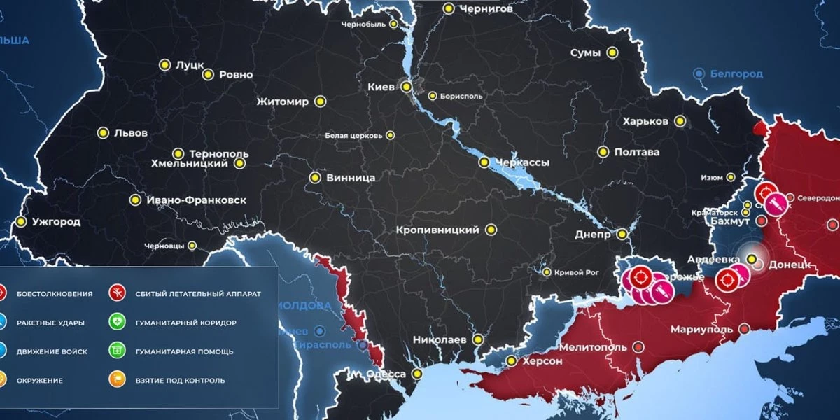 Карта боевых действий на Украине сегодня, обстановка к утру 26 июня 2023 года от Mash. Бои за Авдеевку