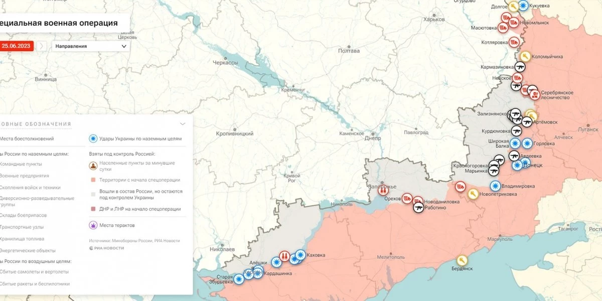 Карта боевых действий на Украине, к утру 26 июня 2023г., от РИА Новости