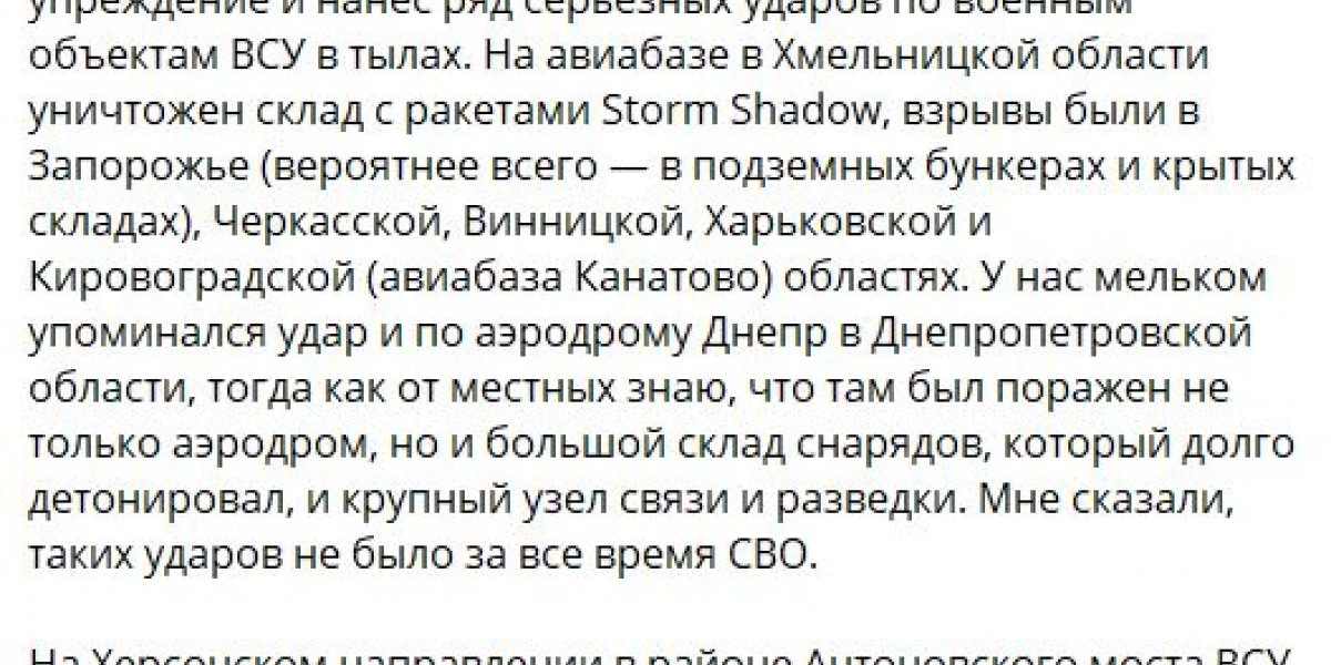 Также в районе населенного пункта Кушугум Запорожской области уничтожен склад боеприпасов 65-й механизированной бригады ВСУ.