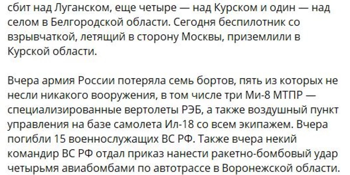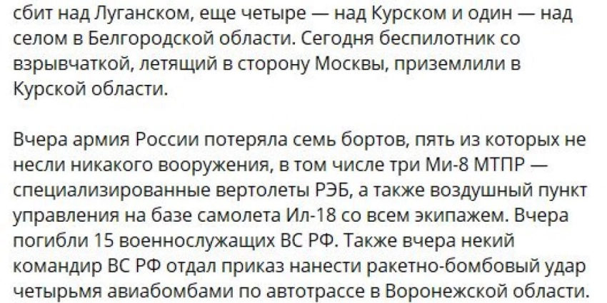 «У русских больше военно-воздушных сил, а их самолеты технологически превосходят украинские. Россия также может использовать большое количество беспилотных летательных аппаратов как для сбора разведданных, так и для прямых действий против украинских сил. Российские вертолеты, такие как Ка-52, хорошо показали себя в уничтожении украинской бронетехники», — заявил он.