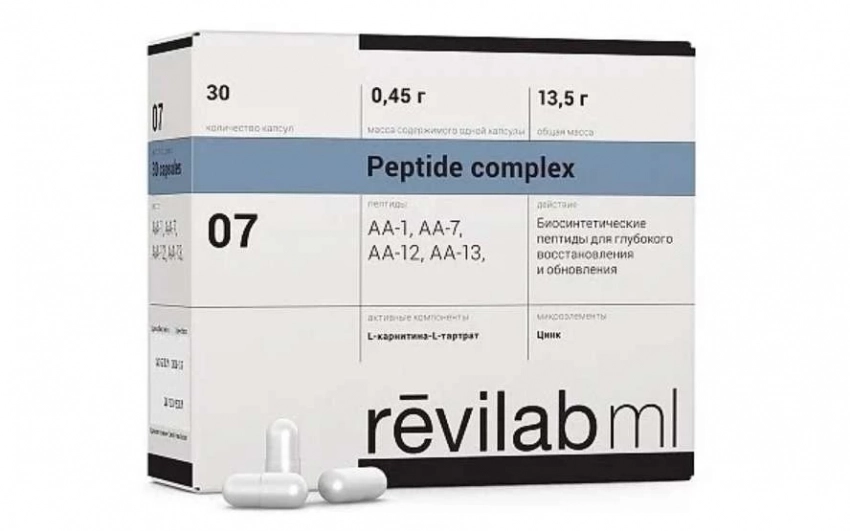 Мужские витамины Revilab ML 07 предназначены для поддержки мужского организма, содержащий комплекс биологически активных веществ, сохраняющих и усиливающих адаптационные возможности. Препарат включает в себя геропротекторы – пептиды, синтезированные в лаборатории, замедляющие процессы старения на клеточном уровне. Они предотвращают дефекты в функционировании генов, стимулируют синтез белка, способствующего регенерации клеток и тканей. Пептиды – вещества, которые могут положительно влиять на организм без нежелательных эффектов. Они способны восстанавливать функции органов и систем, поддерживая их нормальную работу. Кроме того, пептиды повышают иммунитет и защищают организм от вредных воздействий. Это делает их важными в медицине и косметологии. Исследования в данной области продолжаются, и возможно, что пептиды станут ключевым фактором в лечении различных заболеваний и сохранении молодости и здоровья.
