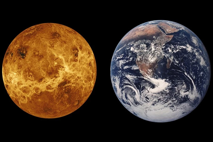 Венера и Земля имеют несколько общих черт. Обе планеты земного типа состоят из силикатных минералов и металлов, которые различаются между каменистой мантией и корой и металлическим ядром. Как и Земля, Венера вращается внутри околосолнечной обитаемой зоны (HZ) нашего Солнца, хотя Венера огибает ее внутренний край. И, согласно растущему количеству свидетельств, на поверхности Венеры есть действующие вулканы, которые способствуют атмосферным явлениям (например, молниям). Однако на этом сходство заканчивается и начинаются довольно резкие различия.
