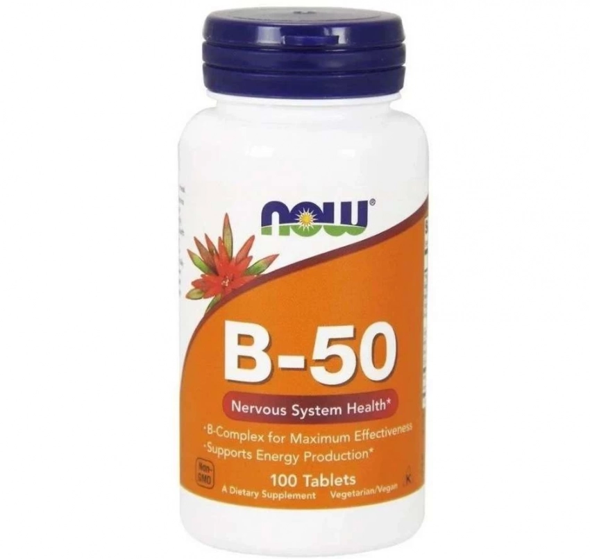 B-50 содержит полный набор витаминов группы B, а также холин и инозитол. Эти витамины способствуют выработке энергии, нормальному обмену гомоцистеина, укрепляют здоровье нервной системы. Витамины группы B растворимы в воде и, за исключением витамина B12, не могут накапливаться в организме, поэтому требуют ежедневного пополнения. Витамин В12 накапливается в печени. Почти все источники этого витамина — животного происхождения (мясо и молочные продукты), поэтому прием пищевой добавки с B12 может быть особенно важным для строгих вегетарианцев. Именно за счет своей эффективности этот препарат и занимает свое место в ТОПе витаминов NOW.