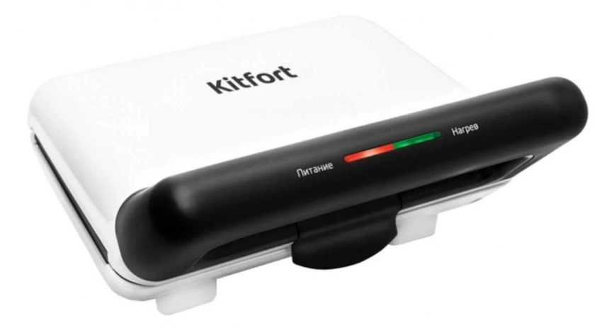 Ребристая поверхность рабочих пластин и высокая температура приготовления способствуют быстрому приготовлению и появлению характерного «полосатого» рисунка на продуктах. Вафельница оснащена термостатом для поддержания постоянной температуры рабочих поверхностей и индикатором, показывающим включение и отключение нагрева. Конструкция kitfort «2 в 1» позволяет использовать вафельницу в двух режимах.