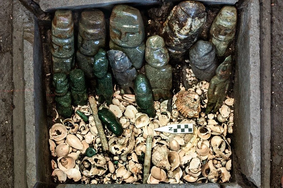 В Мексике найден ящик с антропоморфными фигурками для подношений