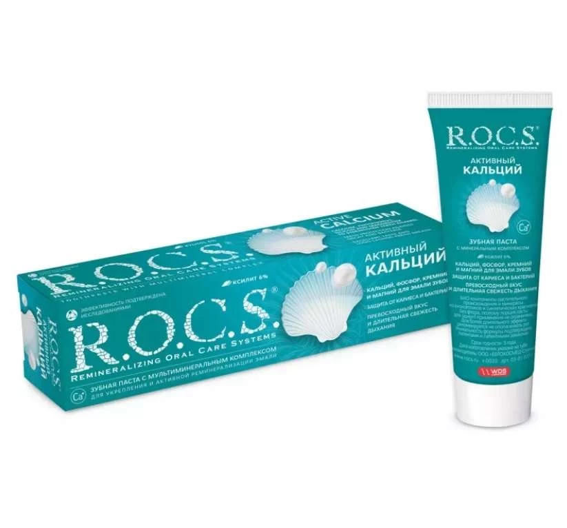 Зубная паста R.O.C.S. Активный кальций — уникальное средство, обогащенное биодоступным кальцием и минеральным комплексом, включающим кальций, фосфор, кремний и магний в оптимальном соотношении для укрепления зубов. Она интегрируется в структуру эмали, возвращая зубам естественную белизну и блеск, а также повышая устойчивость к кариесу. Благодаря содержанию ксилитола (6%), этот продукт препятствует развитию кариесогенной микрофлоры, уменьшает образование зубного налета и восстанавливает баланс полезной флоры. Зубная паста R.O.C.S. Активный кальций обладает низкой абразивностью, что делает ее идеальным выбором для людей с чувствительными зубами и дефектами эмали. Паста также обеспечивает свежее дыхание.