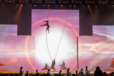 - Исполнители современного и традиционного танца исполняют акробатические элементы, демонстрирующие богатство саудовского исторического наследия и культуры, во время церемонии открытия 45-й сессии Комитета всемирного наследия ЮНЕСКО в Эр-Рияде. (PRNewsfoto/Saudi National Commission for Education, Culture and Science)