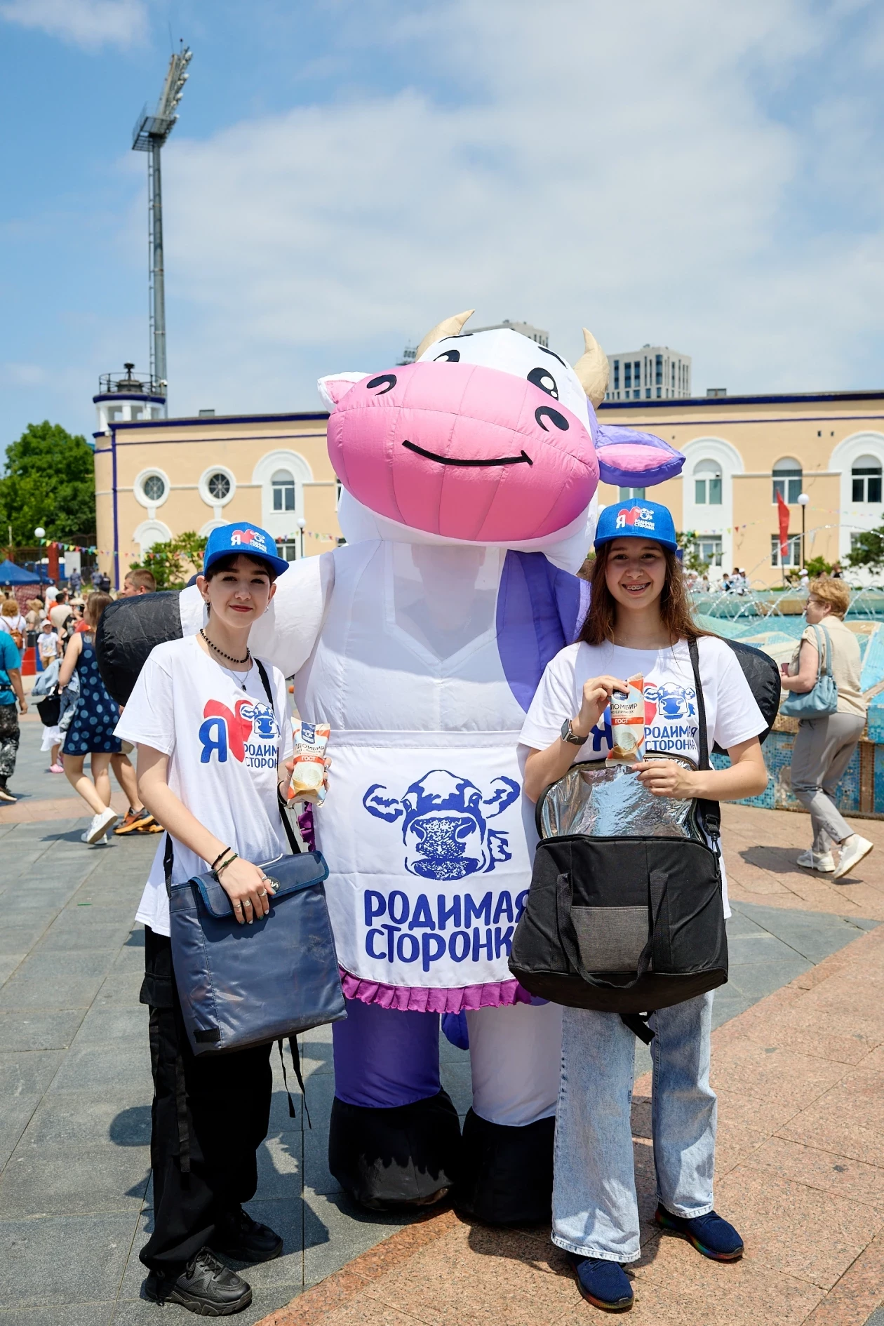 Десерт стал прекрасным дополнением городского праздника, организованного на Набережной. Мороженое раздавали промоутеры с участием маскота в виде большой коровы. Помимо десерта люди получали веселую кепку из картона в виде коровы.