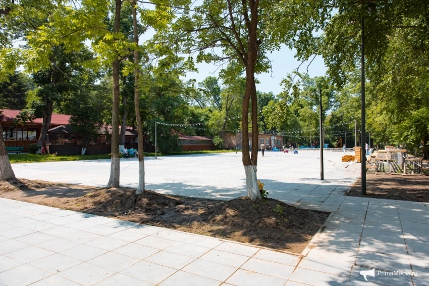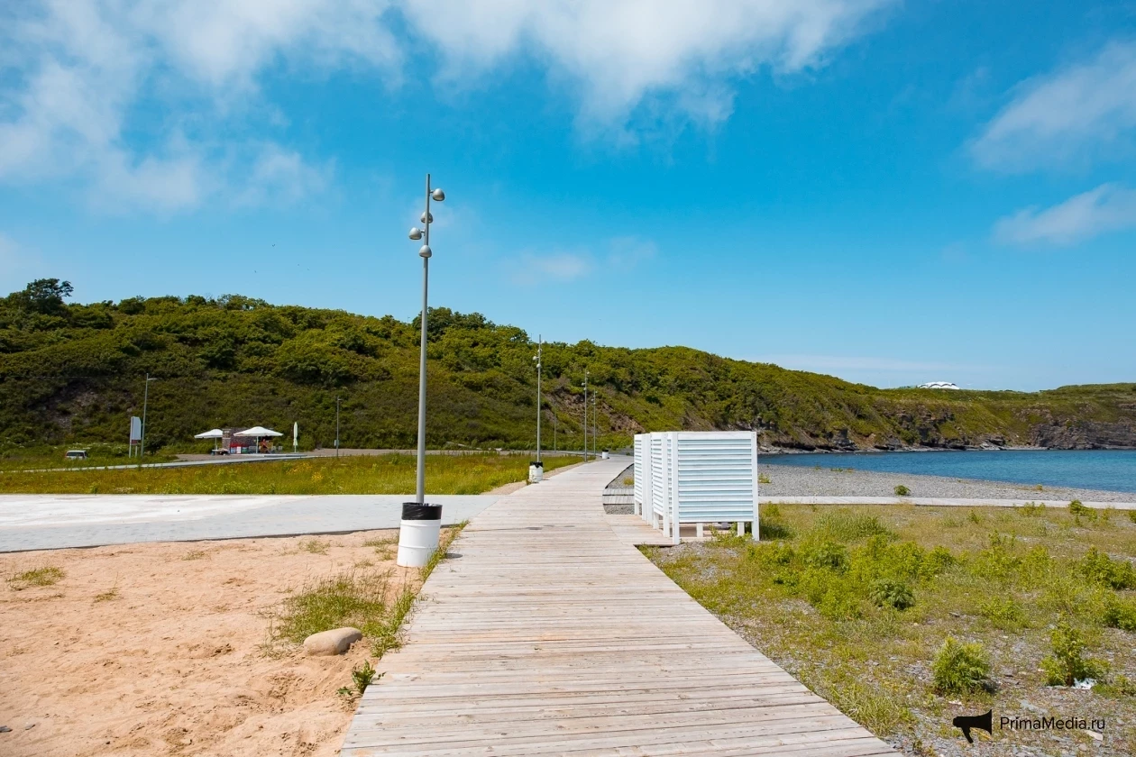 По ровному берегу с мелкими камешками и насыщенной зелёной травкой пролегают деревянные дорожки — идеальное место для прогулок, по словам посетителей. Для любителей активного отдыха есть прокат сапов, чтобы отправиться в увлекательное путешествие по акватории Владивостока.