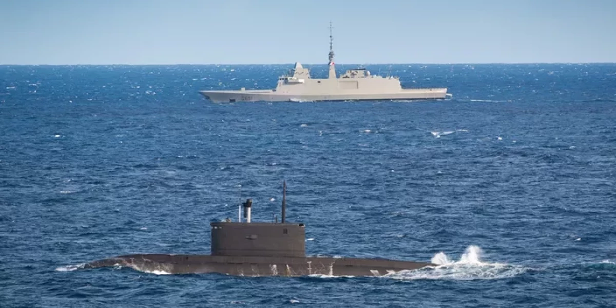 Французский фрегат Нормандия сопровождает российскую подлодку в Гасконском заливе (МО Франции) (из статьи в «Фигаро»)