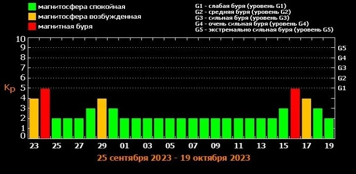 Предварительный прогноз магнитных бурь на месяц