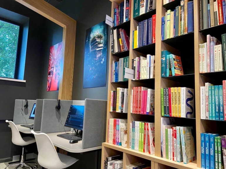 В «Колибри» больше 30 тысяч книг на 45 языках, в том числе — малых народов, живущих на Южном Урале. Получить издание можно не только с помощью библиотекаря, но и на станции самостоятельной книговыдачи. Также креативное пространство оснащено мультимедийными экранами, желающие могут поработать в комнатах тишины с суперсовременными компьютерами.