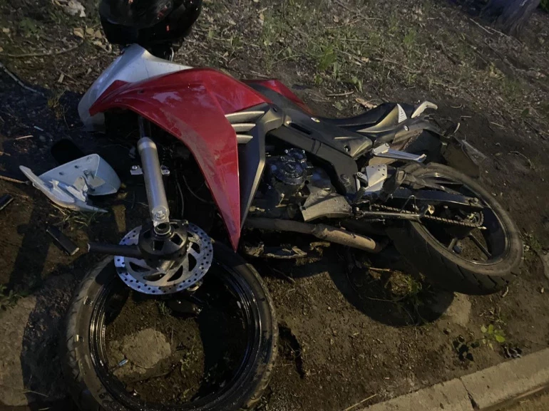 От удара у мотоцикла разнесло переднюю часть