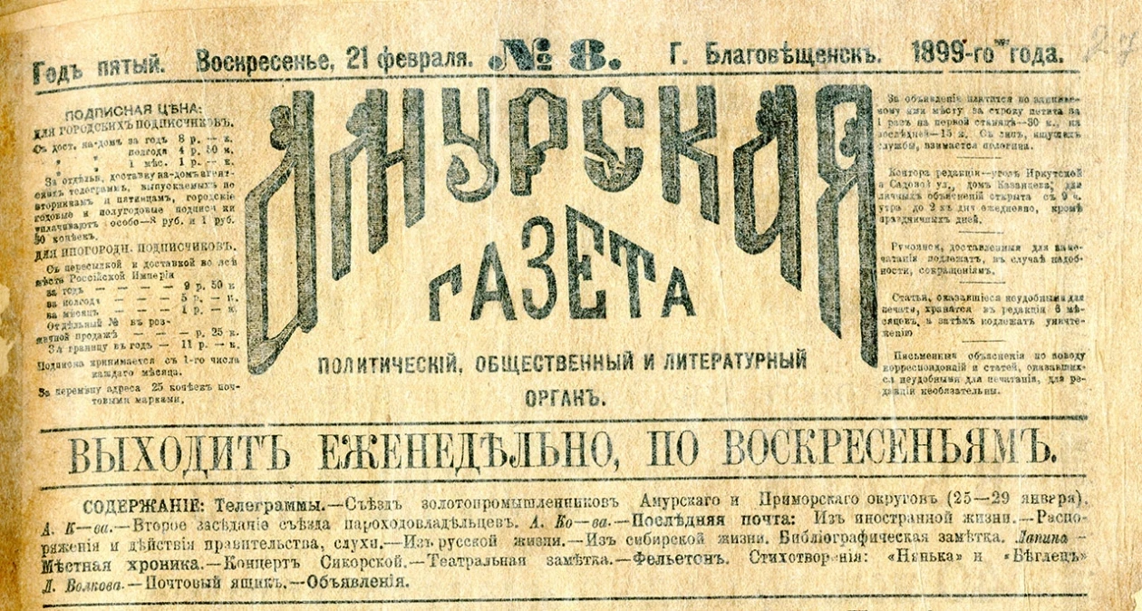 Амурская газета, 1899 г.. Фото: из открытых источников
