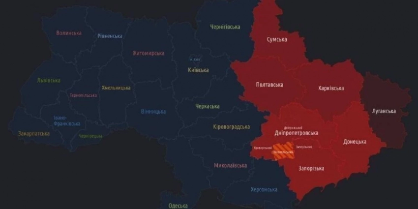 Карта воздушной тревоги на Украине сегодня: Воздушная тревога объявлена по всей Украине