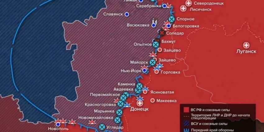 - Стало известно, что бойцы ЧВК Вагнера выбили ВСУ из н. п. Иванград возле Бахмута (Артёмовска) и заняли там обустроенные украинскими силами оборонительные рубежи. Одновременно идут бои за н. п. Опытное.