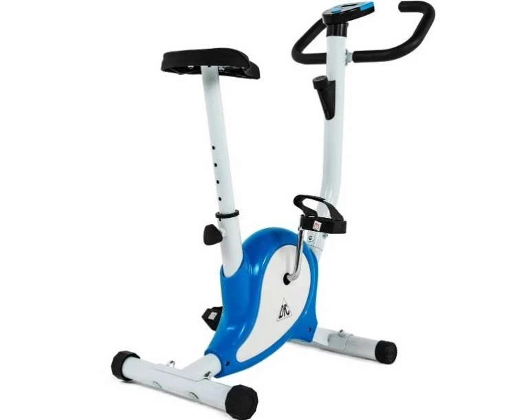 Вошел в наш топ велотренажер DFC B8508 – компактное устройство с вертикальной посадкой и комфортным сидением. Регулировки сидения и руля позволяет подобрать оптимальную посадку. Регулировка нагрузки ручная. Сиденье эргономичное повышенной комфортности. Педали широкие с регулируемыми ремешками. Педальный узел – однокомпонентный шатун. Пульс вертикальные велотренажеры dfc измеряют посредством сенсорных датчиков на руле. Есть монохромный LCD дисплей с подсветкой.