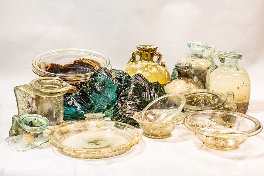 «Артур» обнаружил множество различных предметов из стекла, включая бутылки, тарелки, чашки, миски, небольшой косметический сосуд и несколько необработанных блоков. Помимо стеклянной посуды на поверхность были вынесены два больших бронзовых бассейна и несколько амфор.