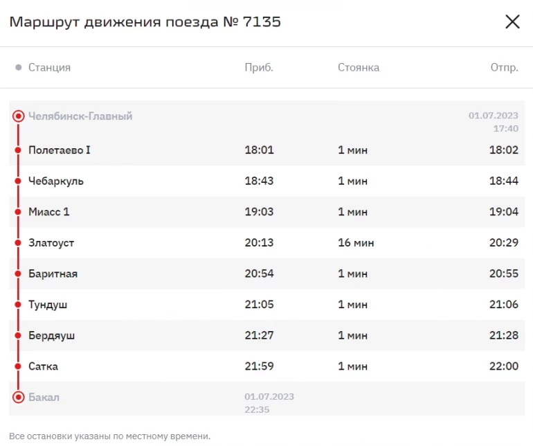 Из Бакала электропоезд будет отправляться ежедневно в 03:54 и прибывать в Челябинск в 08:57. Время в пути составит 5 часов и 3 минуты.