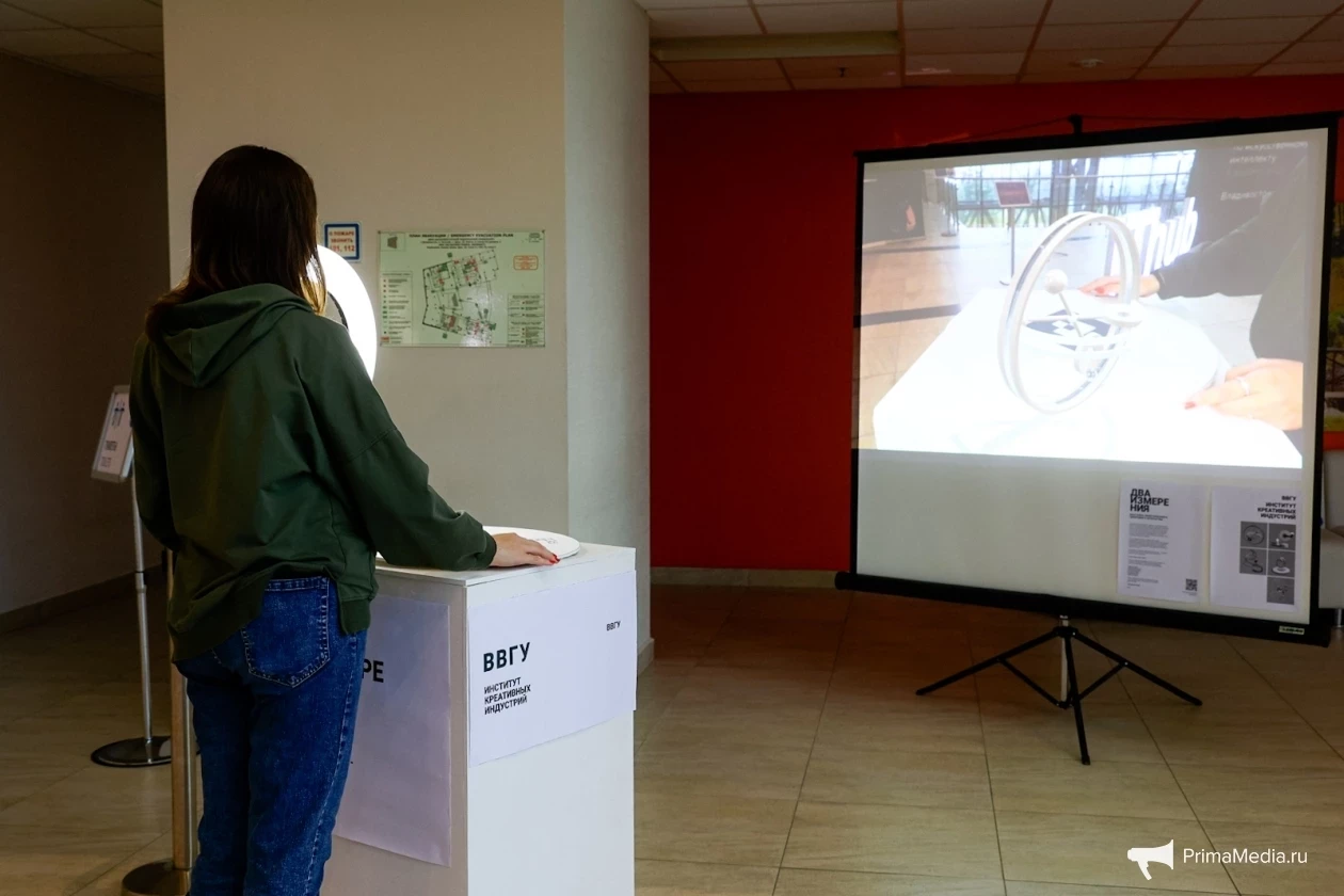 Особый интерес вызвали экспериментальные стенды студентов и преподавателей Института креативных индустрий ВВГУ в области визуальной коммуникации и цифрового искусства.
