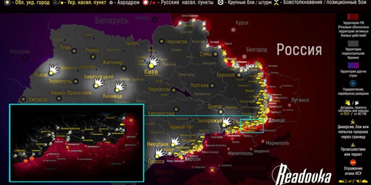Карта боевых действий на Украине сегодня, к утру 21 июня 2023г. Карта от readovka.news