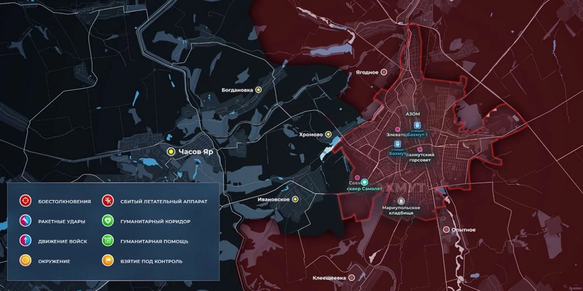 Карта боевых действий на Украине сегодня, обстановка к утру 21 июня 2023 года от Mash. Бои на Артёмовском направлении