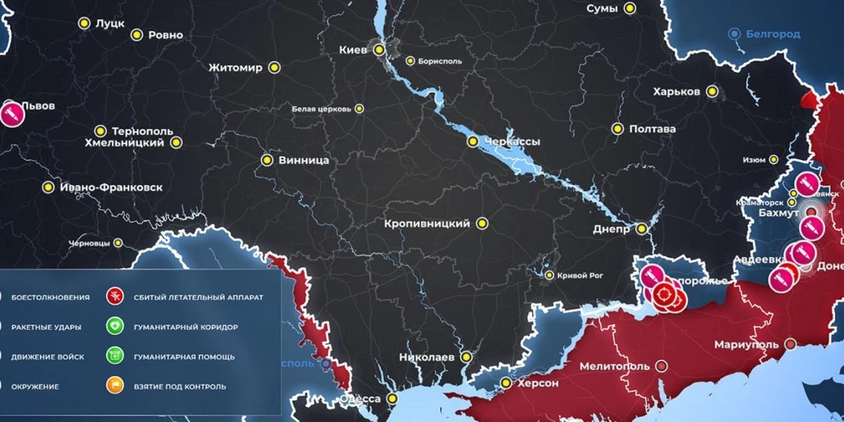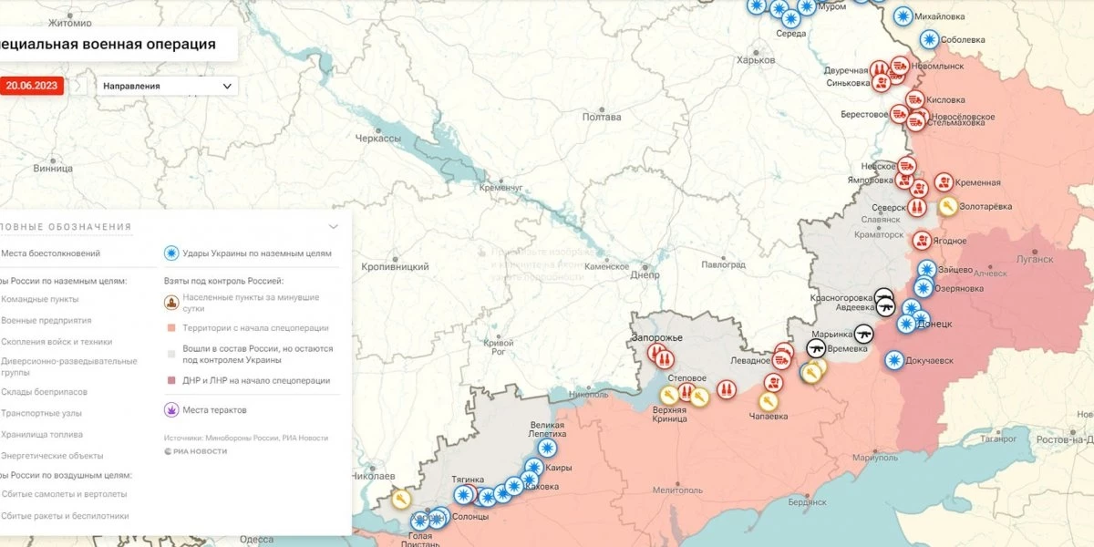 Карта боевых действий на Украине, к утру 21 июня 2023г., от РИА Новости