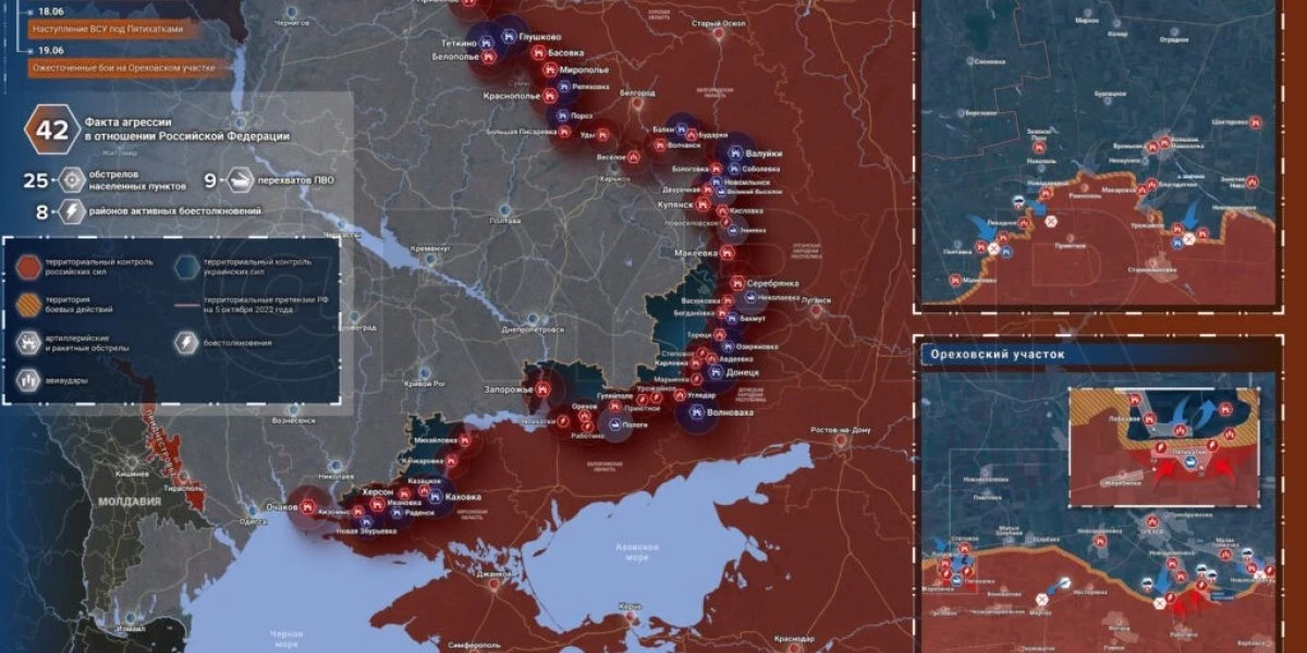 Карта боевых действий на Украине сегодня, Общая обстановка к утру 21 июня 2023 года от Mash