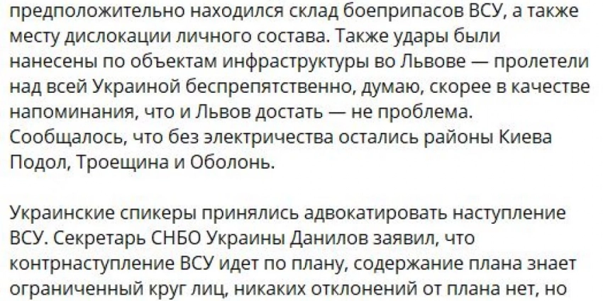 “С КАЖДЫМ ДНЕМ СТАНОВИТСЯ ЯСНО, ЧТО УКРАИНСКОЕ КОНТРНАСТУПЛЕНИЕ НЕ ДОСТИГАЕТ НИ ОДНОЙ ИЗ ПЕРВОНАЧАЛЬНО ЗАЯВЛЕННЫХ ЦЕЛЕЙ”, – СЧИТАЕТ ОН.