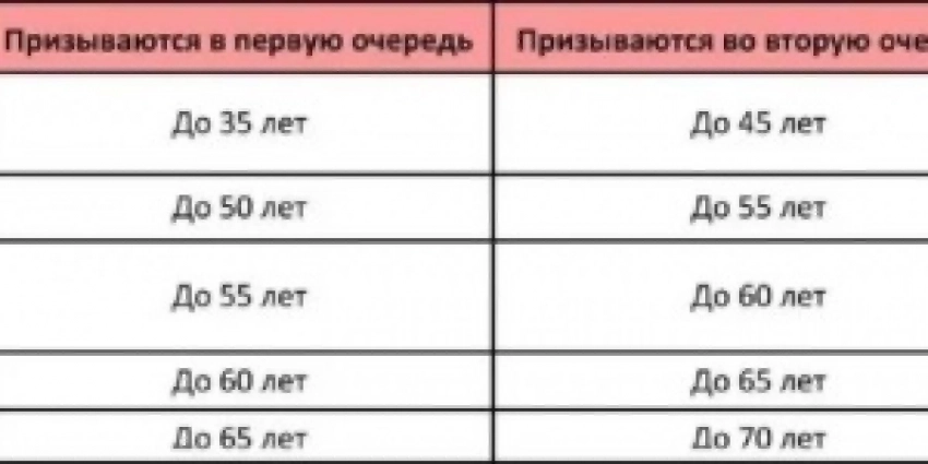Согласно разъяснениям Минобороны, подлежат призыву по мобилизации рядовые и сержанты до 35 лет, младшие офицеры до 50 лет и старшие — до 55 лет, а также граждане, имеющие боевой опыт. Приоритетными критериями считаются не воинские звания, а военно-учетные специальности: стрелки, танкисты, артиллеристы, водители, механики-водители.