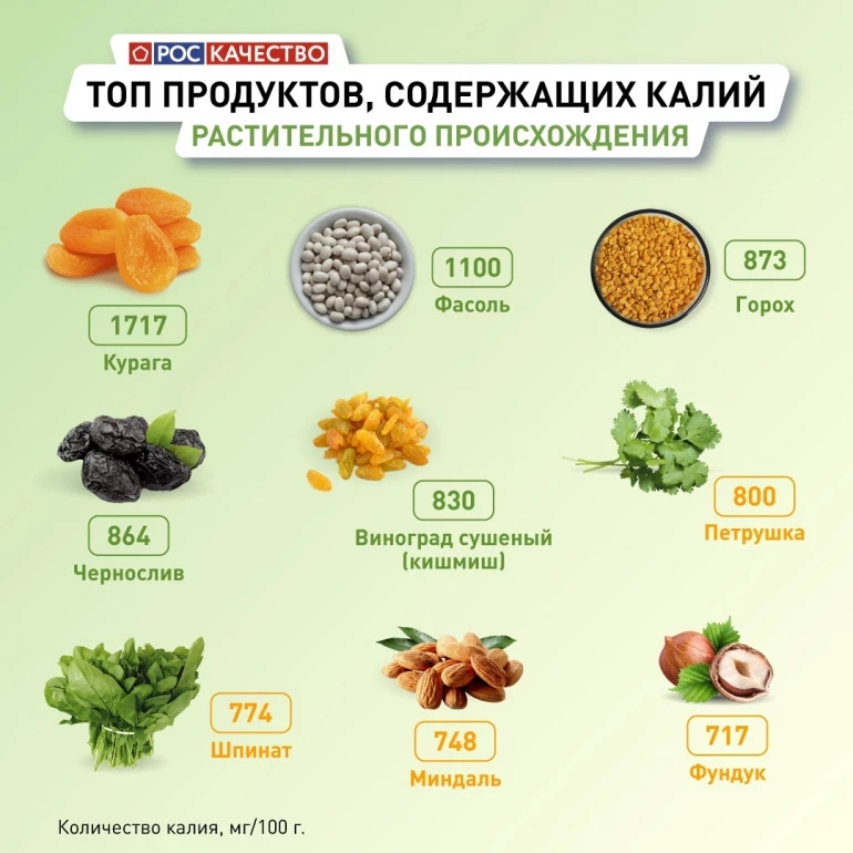 — Калий отвечает за работу сердца, почек, прочность костей, регулирует артериальное давление, а также способствует синтезу белка и усвоению углеводов. Многие продукты содержат калий, и, учитывая важность этого минерала для всего организма, следует включить их в свой рацион, — рассказали эксперты.