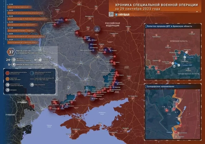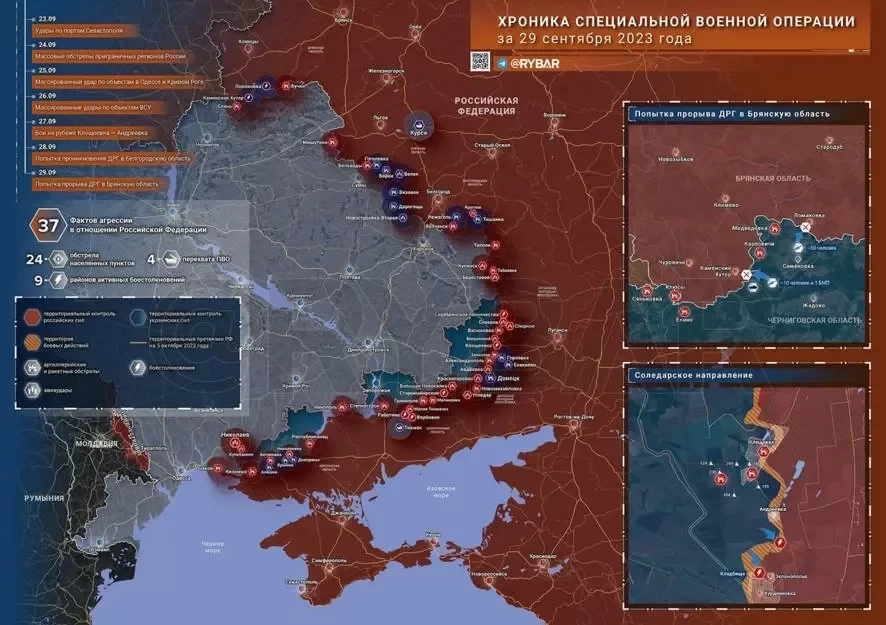 Свежая карта боевых действий на Украине на сегодня, 30 сентября 2023 года