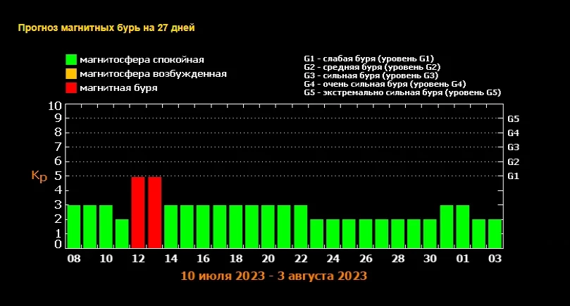 13 июля — геомагнитный шторм в 6 баллов.