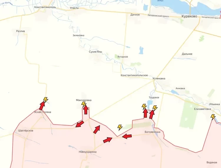 На Константинопольском направлении евернее Новоукраинки ВС РФ существенно расширили зону контроля и зашли в село Максимовка, где и завязались бои с противником.