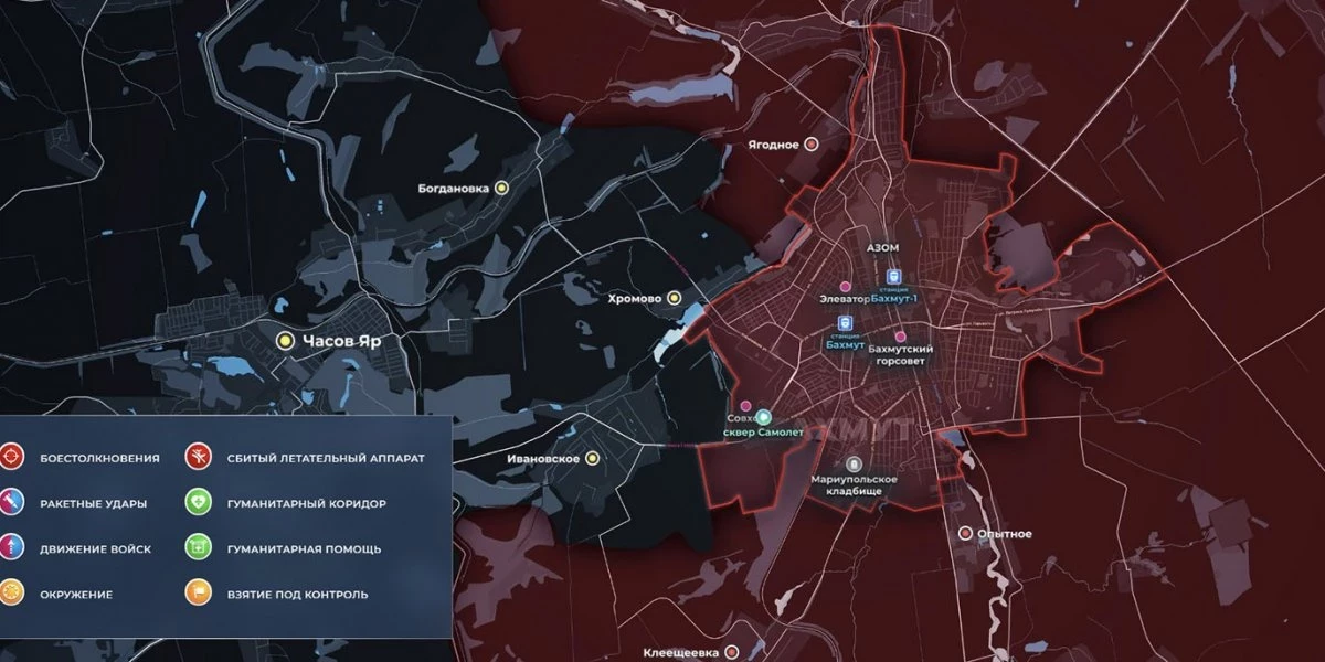 Карта боевых действий на Украине сегодня, обстановка к утру 10 июля 2023 года от Mash. Бои на Артёмовском направлении