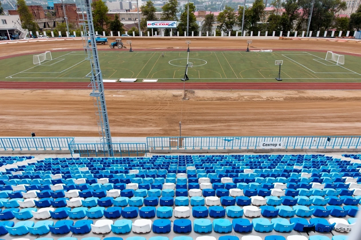 “Ремонт мы закончили в срок. Владивостокский “Восток” тренируется на домашнем треке с конца июня каждый день. Во время первого этапа реконструкции было заменено ядро стадиона. Второй этап включал полную замену железобетонных изделий трибун в количестве около 500 штук, кресел, установку новых лестничных маршей и леерных ограждений, а также судейской, которая находится над зрительскими трибунами”, — рассказал Валерий Курочкин.